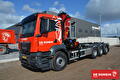 Ce camion puissant de 470 ch est équipé d'une grue pliante HMF de 22T/m. En plus de la grue HMF, le véhicule est également doté d'un système de bras de crochet pour charger et transporter rapidement des conteneurs. Ce camion multifonction est utilisé pour des projets à travers toute l'Europe.