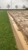 Les travaux consistent à retirer la terre végétale, à stocker soigneusement la clôture et à niveler le terrain avec un système de GPS 3D. Un défi supplémentaire de ce projet est que l'exécution et la réalisation doivent se faire dans un délai extrêmement court.