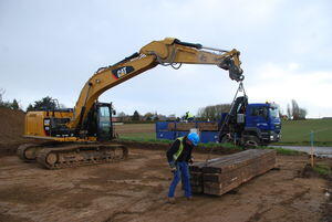 En outre, nous avons réalisé en deux phases, au niveau de la partie sud, un total de 20 000 mètres de voies de caissons, qui ont ensuite été enlevées pour réduire l'impact sur le sol pendant la pose de la conduite.