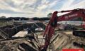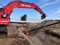 Après la livraison des mogs haute tension, nous avons refermé les cuves et avons rétabli la surface du sol à son état original. Pour l'installation de la paroi de soutènement, nous utilisons notre Sennebogen 653 E.