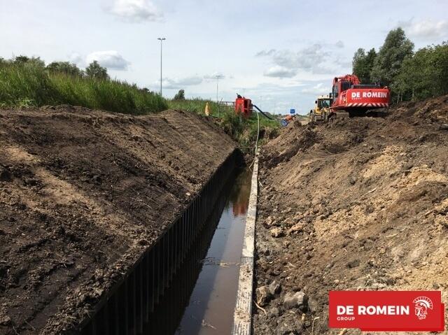 En raison de l'emplacement de ce chantier près de l'autoroute A7, nous avons mis en place, en consultation avec les Rijkswaterstaat, plusieurs dispositifs de circulation tels que des déviations en mouvement et des barrières le long de la bordure.